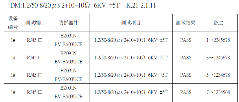 根據(jù)ITU-T K.20/K.21的測(cè)試要求,網(wǎng)口常見的測(cè)試等級(jí)如下: