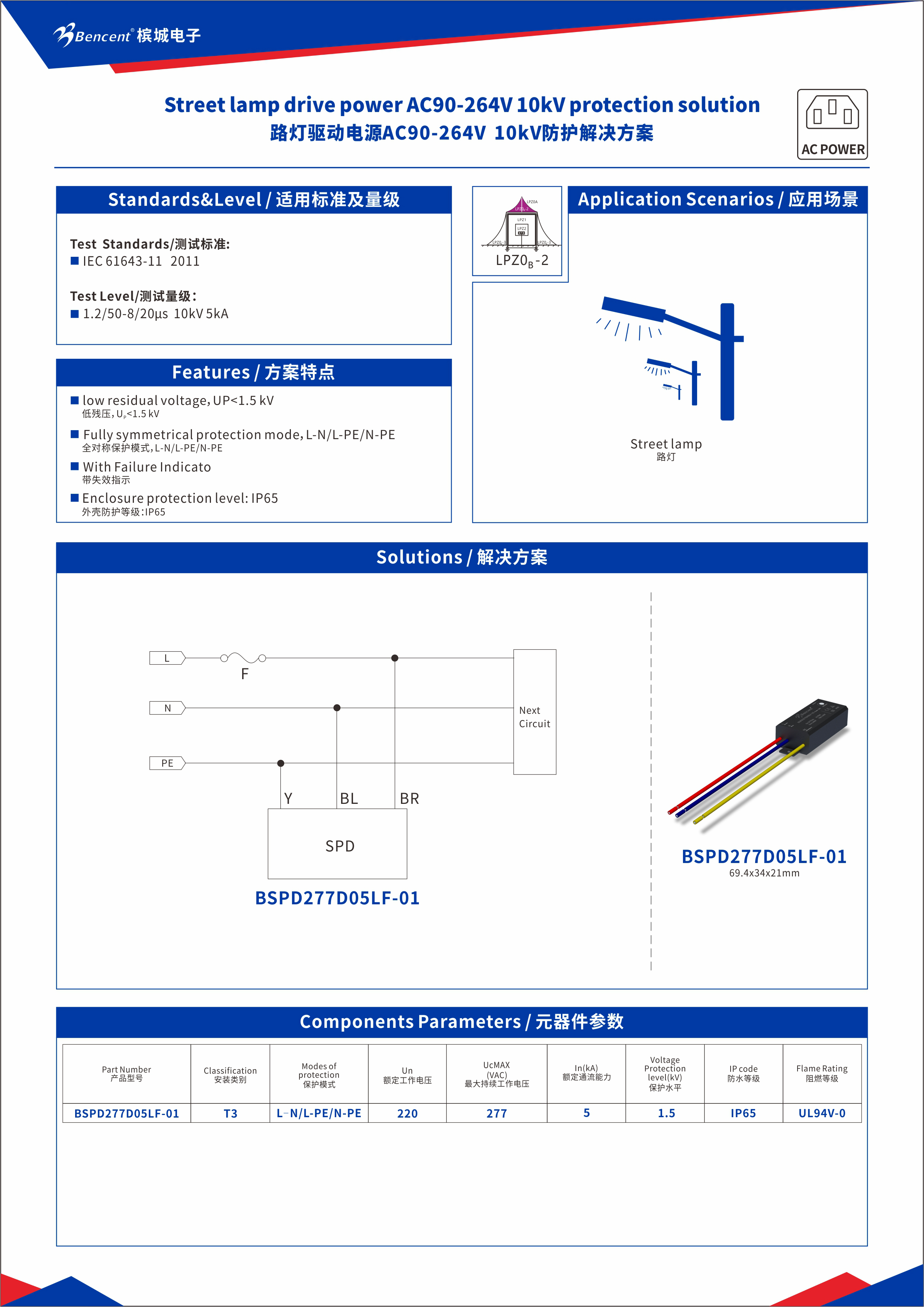 ? 外置式路燈驅(qū)動電源防雷模塊BSPD277D05LF系列——提供高耐壓低殘壓的防雷SPD